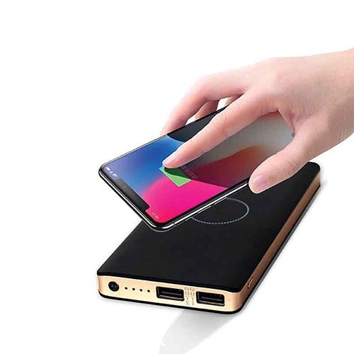 Conveniently charge your mobile phones without cables. High capacity of 10,000mAh with 2 USB output. Torch light function. Elegant and slim design with classy trim at the sides. Available in black and white colours. Size: 148mm by 70mm by 14mm. Weight: 228g. Packaging: Black premium gift box.